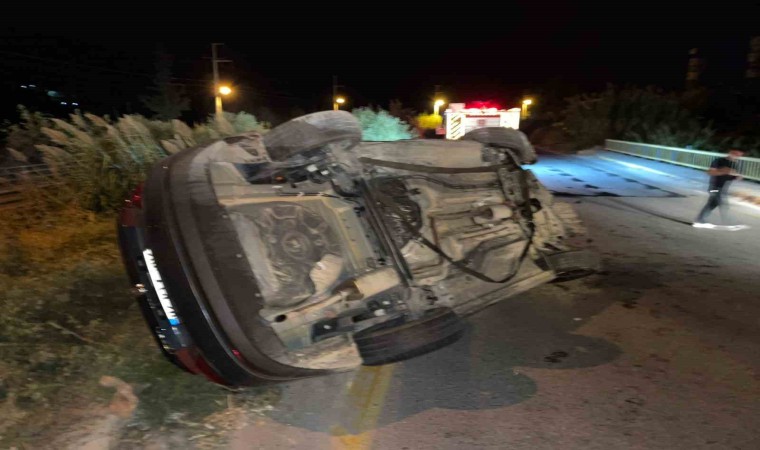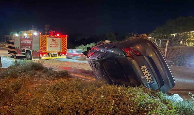 Söke-Ağaçlı yolu üzerinde meydana gelen trafik kazasında devrilen otomobildeki iki kişi yaralandı.