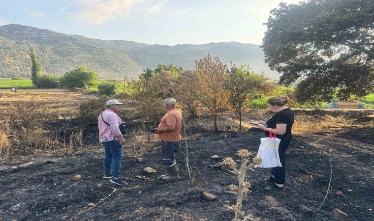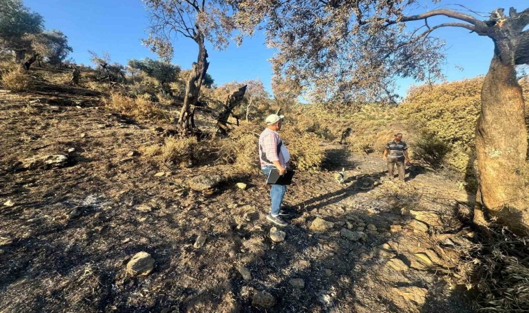 Söke ilçesi Kisir Mahallesi’ndeki zeytinlik alanda çıkan ve 500 dekarlık alanın zarar gördüğü yangının ardından, Söke İlçe Tarım ve Orman Müdürlüğü yangından etkilenen zeytinlik alanlarda inceleme başlattı. Yapılan incelemelerin ardından afet ihbarı yapılmasına karar veren ilçe müdürlüğü, Tarım ve Orman Bakanlığı’na başvuru yapacak. Bu çerçevede sahaya inen ekipler, teknik ekipler tarafından bölgede hasar tespiti yaptı.