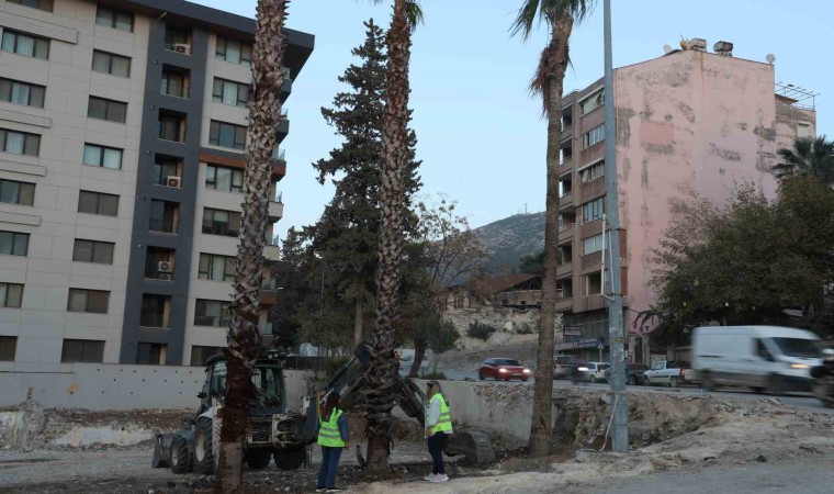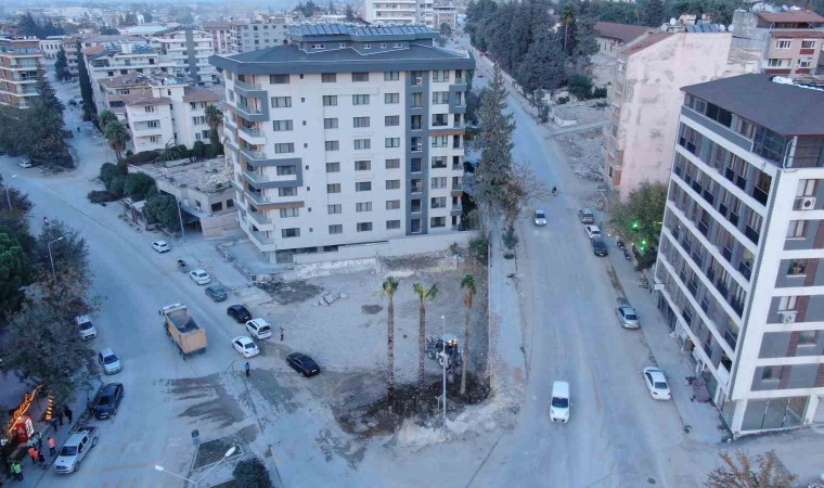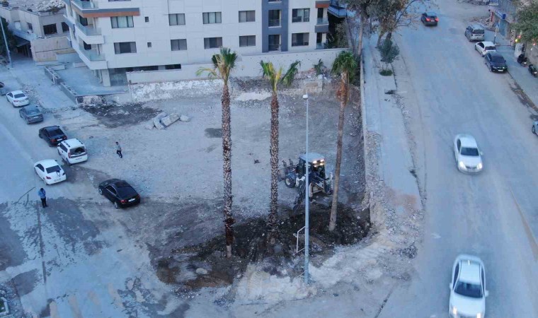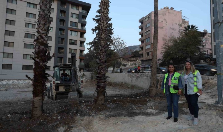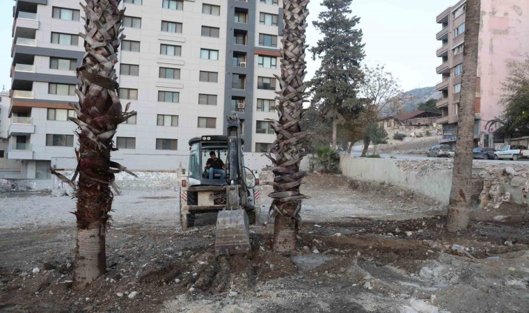 Depremin vurduğu Hatay’da enkaz kaldırma işlemleri esnasında 1 palmiye ağacını söken hafriyat şirketi, 2 bin 100 fidanı toprakla buluştururken aynı noktaya yetişkin 3 palmiye ağacı dikti.