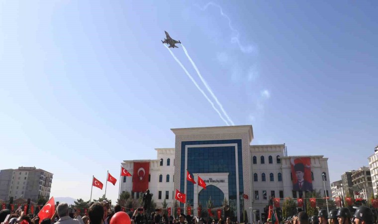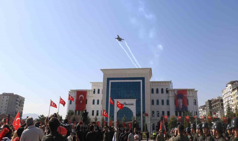 Cumhuriyetin 100’üncü yılı etkinlikleri Elazığ’da çeşitli etkinliklerle kutlanıyor. Bu çerçevede Türk Hava Kuvvetlerinin akrobasi timi SOLOTÜRK, Elazığ semalarında selamlama uçuşu yaptı. Uçuşu izlemek isteyen yüzlerce vatandaş, valilik meydanına akın etti. SOLOTÜRK pilotları, meydan üzerinde alçak uçuş yaptı. Meydanda toplanan yüzlerce vatandaş, ellerindeki Türk bayraklarını sallayarak gösteri uçuşunu büyük bir ilgi ve heyecanla izledi.