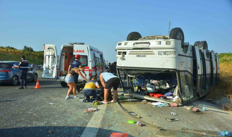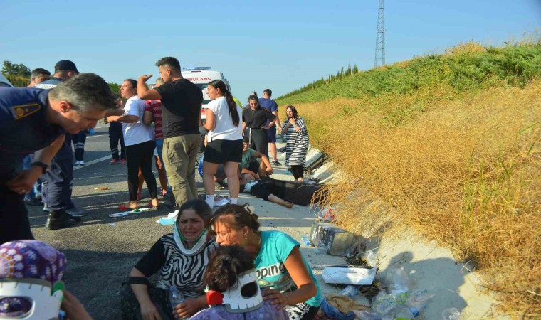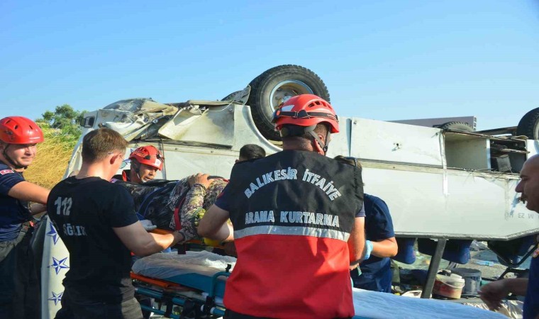 Kaza, İzmir-İstanbul Otoyolu’nun Soma-Savaştepe bölümünde meydana geldi. Edinilen bilgiye göre, mevsimlik tarım işçilerini taşıyan 45 SB 6423 plakalı midibüs ile aynı yönde seyir halinde olan otomobil çarpıştı. Çarpmanın etkisiyle işçileri taşıyan midibüs devrilerek ters döndü. İhbar üzerine olay yerine Balıkesir ve Manisa Büyükşehir itfaiye ekipleri ile birlikte çok sayıda ambulans sevk edildi. Kazada 1’i ağır 30 kişi yaralanırken, olay yerine gelen itfaiye ekipleri, otomobil ve midibüste sıkışan yaralıları çıkararak sağlık ekiplerine teslim etti. İlk müdahalesi olay yerinde yapılan yaralılar, ambulanslarla Soma ve Savaştepe Devlet Hastanelerine kaldırıldı. Kazayla ilgili soruşturma başlatıldı.