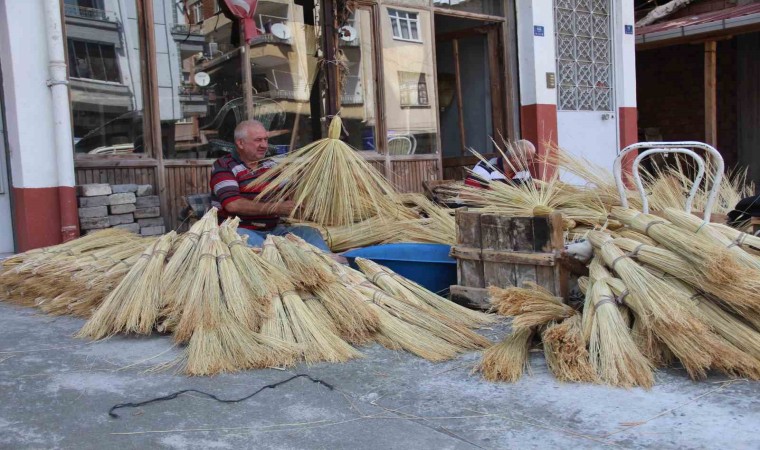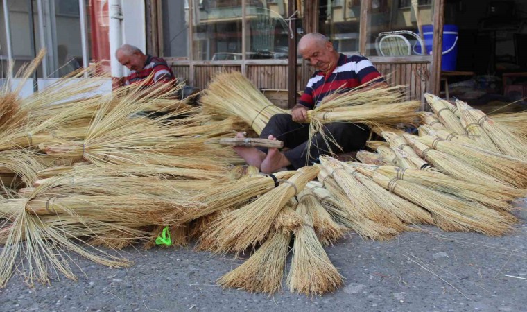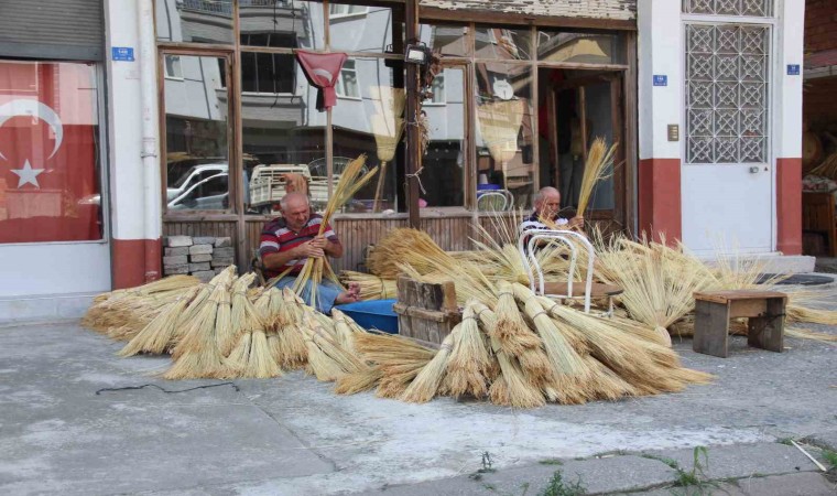 Samsun’un Çarşamba ilçesindeki son süpürge ustaları, yok olmaya yüz tutan meslekler arasında bulunan el süpürgeciliği mesleğini devam ettiriyor.