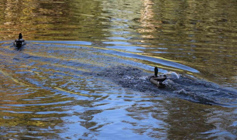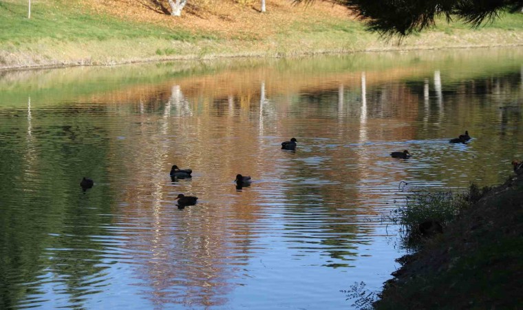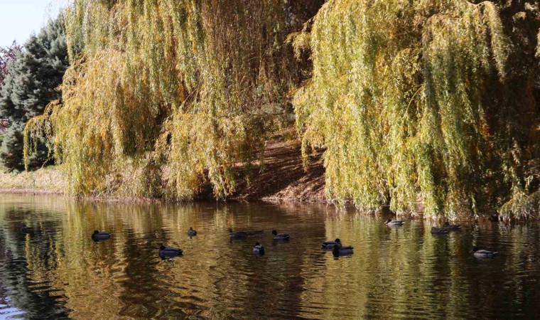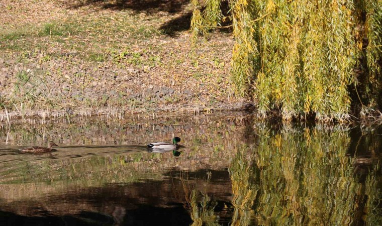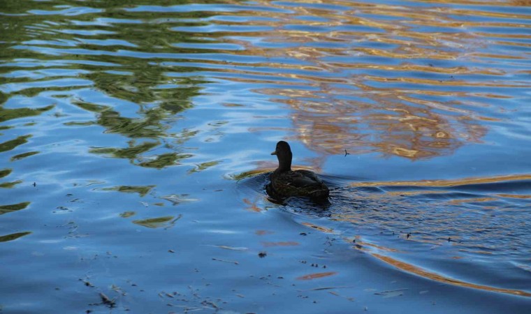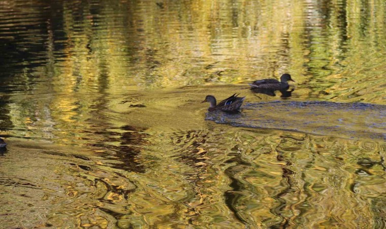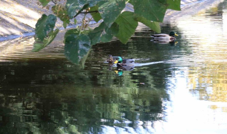Eskişehir’de sonbahar renkleri arasında Porsuk Çayı’nda yüzen ördeklerin görüntüsü güzel manzaralar oluşturdu.