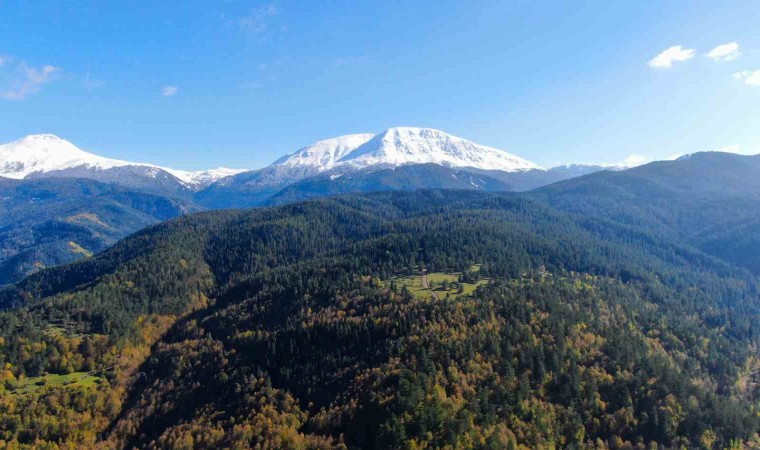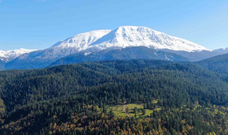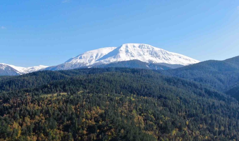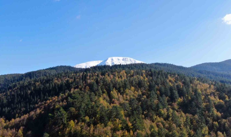 Zirvesi beyaz örtüyle kaplanan Ilgaz Dağı ile renk cümbüşüne bürünen ormanların buluşması mest etti. Kartpostallık görüntülerin ortaya çıktığı Ilgaz Dağı havadan görüntülendi.