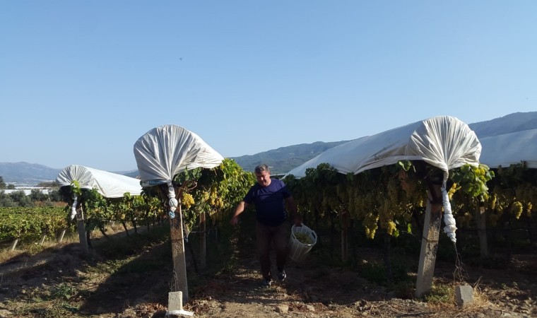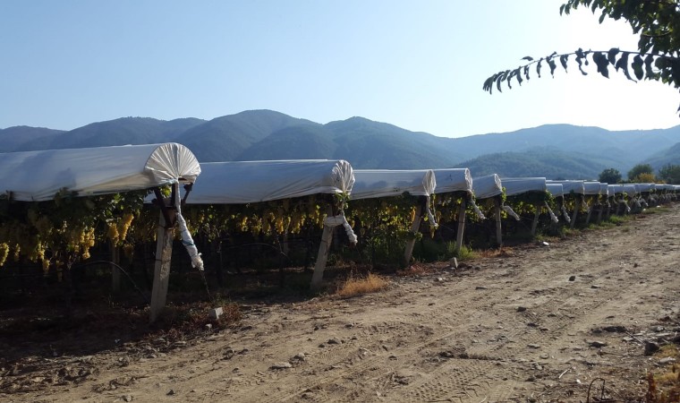Temmuz ayında örtü altına alınan ve hasadı aralık ayına kadar devam edecek olan Manisa’nın dünyaca ünlü Çekirdeksiz sofralık Sultaniye üzümü bağlarında sonbahardaki gün batımı mest ediyor. Gün batımı eşliğinde örtü altındaki üzümler güzelliklerine güzellik katıyor.
