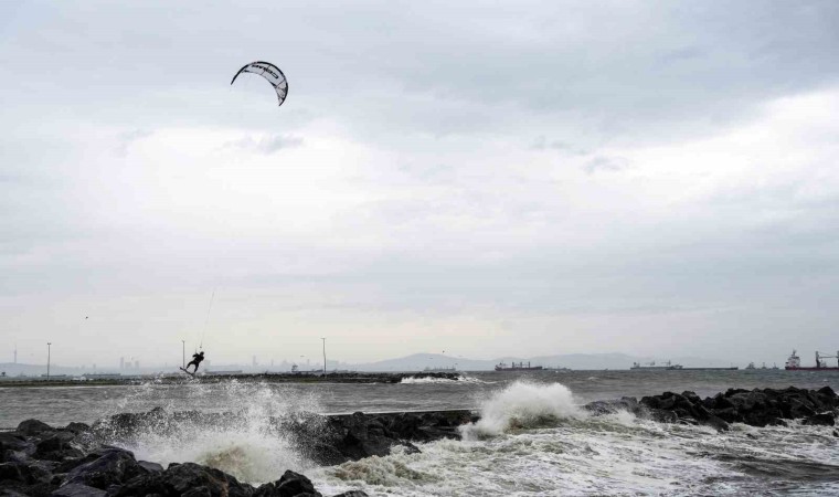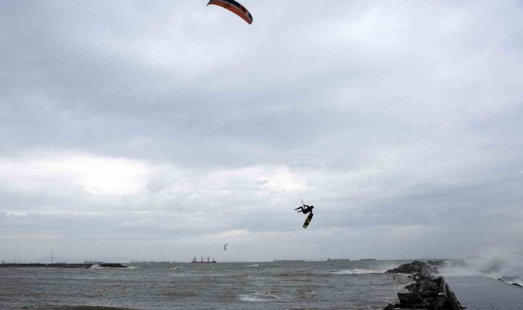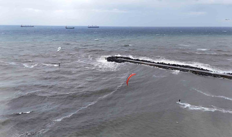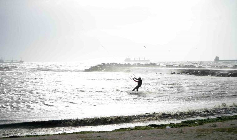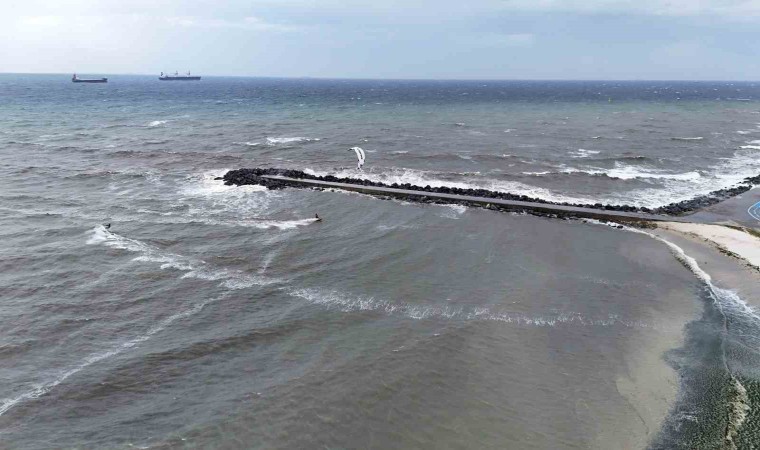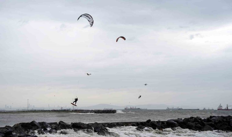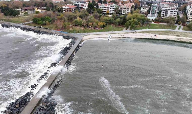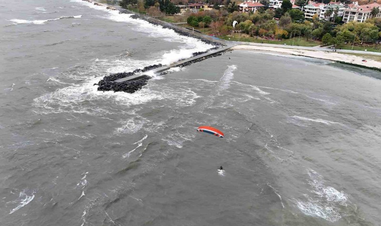 İstanbul’da etkili olan lodosu eğlenceye çeviren sörf tutkunları, Yeşilköy Sahili’nde uçurtma sörfünün tadını çıkardı. Hareketleriyle dev dalgalara meydan okuyan sporcuların o anları havadan görüntülendi.