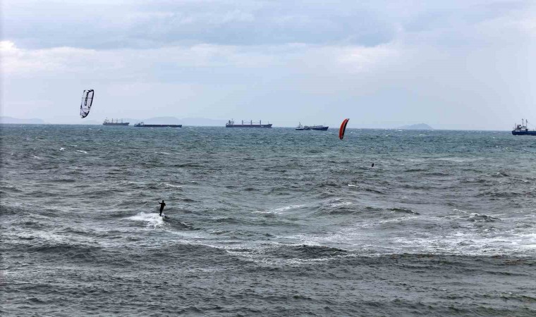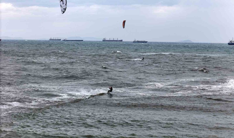 Sörf yapan Barış Eroğlu, "Bu havaları kolluyoruz. Bu havalarda çok heyecanlanıyoruz. Fırtına alarmı verildiğinde bizim whatsapp gruplarımız var, oradan haberleşiyoruz. Aslında bu havalar en idealleri. Fazlasında ileri seviye olmak gerekiyor. Ben mesela yüksek havada çıkamam. Uçurtma küçüldükçe daha hızlı hareket ediyor. Spor araba gibi oluyor. Çok güçlü, atak ve seri hale geliyor. Bizim için daha sportif bir sürüş oluyor. Düşük havada da kayıyoruz ama yüksek havaları daha çok tercih ediyoruz. Tam bir özgürlük. Doğanın içerisindeyiz. Rüzgar, deniz, gökyüzü ve martılarla beraber tam bir özgürlük hissi" dedi.