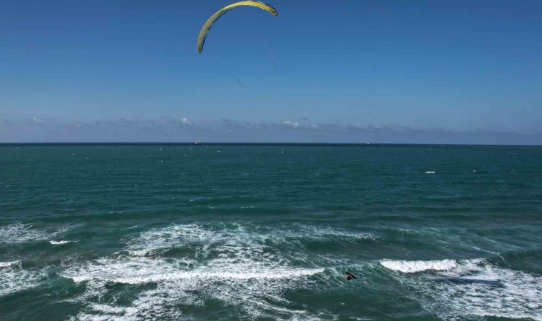 Rüzgarın etkisiyle dalgaların üzerinde adeta dans eden sörfçülerin yaptığı şov havadan görüntülendi. Sörfçülerin gösteriye dönüşen çalışması Miami sahillerini andıran görüntülerim ortaya çıkmasını sağladı.