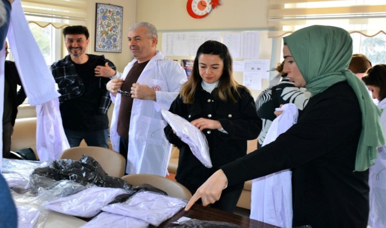 Öğretmenlerin yarı yıl tatili öncesi önlüklerini aldığını belirten Öcal, “Milli Eğitim Bakanlığımızca Olgunlaşma Enstitülerine diktirilen önlükler, Agah Efendi İlkokulunda önlük talep eden öğretmenlerimize İlçe Milli Eğitim Şube Müdürlerimizin de katılımıyla önlükleri takdim edildi. İlçemizde görev yapan bin 100 öğretmenin 415’i önlük talebinde bulundu. Gelen önlüklerin tamamı dağıtıldı. Kalan öğretmenlerimizden önlük talep eden öğretmenlerimizin önlükleri de bilahare gelecek” dedi.
