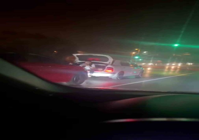 Arnavutköy'de, canlarını tehlikeye atarak sosyal medya için video çekmeye çalışan bir grup kişi, bir başka araç sürücüsü tarafından görüntülendi. Gece saatlerinde trafikte ilerlerken, bir kişi otomobilin açık bagajına oturarak sürücüsünün tehlikeli manevralar yapmasını kayda almaya çalıştı.