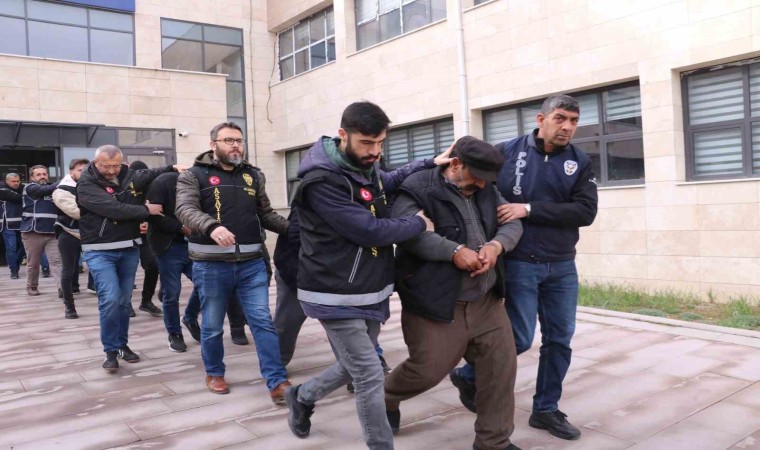 Polis ekipleri elde ettikleri delillerin ardından 15 ayrı eve baskın düzenledi. Baskında 15’i erkek, 4’ü kadın olmak üzere 19 kişi yakalanarak gözaltına alındı. Evlerde yapılan aramalarda ise 23 adet cep telefonu, 26 bin 50 TL para, 8 adet pompalı tüfek, 1 adet ruhsatsız tabanca, mermiler, muhtelif altınlar, torba içerisinde altın görünümlü mercimek şeklinde malzeme, toprak halde kahverengi altın tozu, altın ezme aparatı ele geçirildi. Gözaltına alınan şahıslar emniyetteki işlemlerinin ardından geniş güvenlik önlemleri altında adliyeye sevk edildi.