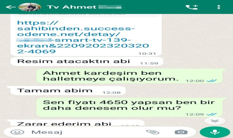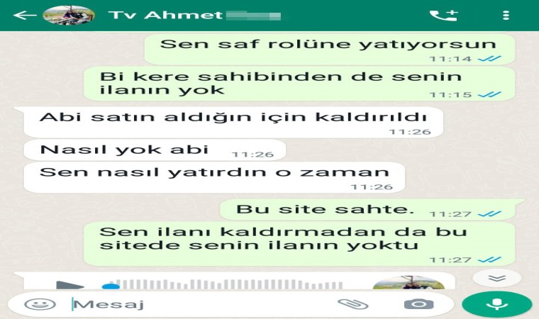 “Facebook’un Market Plus uygulamasında gördüğüm bir ilan için fiyat verdik. Yazıştık anlaştık. Ödemeyi nasıl yapacağımı sorduğumda, ilanım sahibinden.com da olduğunu ve linki göndereceğini söyledi. Param güvende uygulaması üzerinden parayı gönderebileceğimi söyledi. 250 TL de uygulama için yatırmamı söyledi. Ben de ilandaki param güvende ile anlaştığımız televizyon fiyatını gönderdim. Gönderirken, bir başkası adına parayı havale ediyorsunuz. Daha sonra güya sahibinden.com aracılığıyla bu arkadaşa bildirim gidecekti. Bu kişi de anlaştığımız televizyonu bize gönderecekti. Biz parayı havale ettim, aradan birkaç saat geçince televizyonun sahibini aradım. Parayı gönderdiğimi söyleyerek, bildirimin gelip gelmediğini sordum. Bildirimin gelmediğini söylediler” dedi.