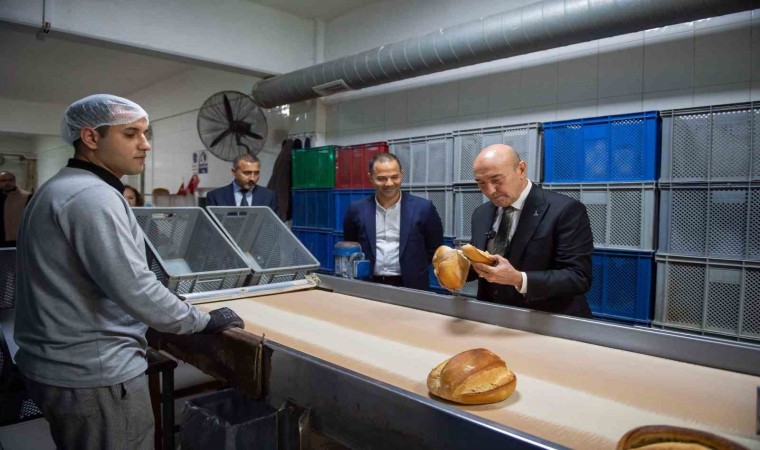İzmir Büyükşehir Belediye Başkanı Tunç Soyer, halka ucuz ve sağlıklı ekmek sunan bir firmaya bağlı Halk Ekmek Fabrikası’nı ziyaret etti. Fabrikanın ekmek üretim aşamalarını inceleyen Başkan Tunç Soyer’e firma yetkilisi de eşlik etti.