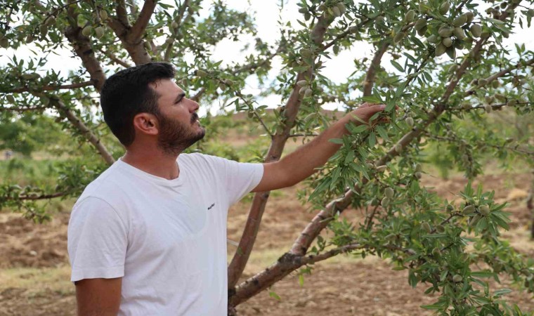Badem ağaçlarına 10 yıl boyunca bakım yaparak verim elde etti
