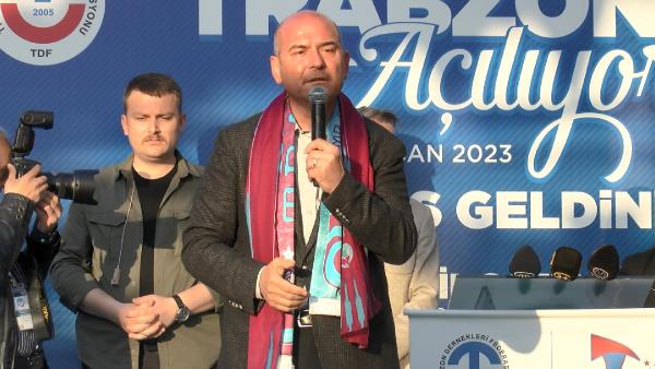 İçişleri Bakanı Süleyman Soylu, Ticaret Bakanı Mehmet Muş ile birlikte, Trabzon Dernekler Federasyonu'na ait Trabzon Evi'nin açılışına katıldı. Açılışı gerçekleştirilen 'Trabzon Evi'ne atıfta bulunan Süleyman Soylu, “Ne kadar seviniyoruz değil mi bu eserle? Ama, Marmaray'la, Avrasya'yla, TCG Anadolu gemimizle de böyle seviniyoruz, şehir hastanelerimizle de, Yavuz Sultan Selim köprümüzle de, dünya pandemide çırpınırken yaptığımız Çanakkale Köprümü'zle de, Yusufeli Barajı'mızla, nükleer santralimizin birinci etabının açılmasıyla, Sakarya Gaz Sahası'nda bulduğumuz gazla da böyle seviniyoruz. Gabar Dağı'nda 8 bin 900 varil petrol 5 aydır çıkıyor. Türkiye'nin en büyük rezervidir. Üç gün önce yeniden bir müjde verdiler. İlk önce çok uç kırdı makine, çıkaramayacak diye korktuk ama, üç gün önce hem TP Genel Müdürü hem, Şırnak Valisi petrolü bulduk dedi. Ne bulmuşlar biliyor musunuz? Suudi Arabistan kalitesinde bir petrol bulmuşlar. Allah'ımıza hamdolsun. Bütün bunlarla sevinen bir milletiz. Yıllarca bu sevinçleri kursaklarımızda bıraktılar. Şimdi bir şey söyleyeyim. Kursaklarımızda bırakmasınlar. 14 Mayıs 1950, 10 yıl sürdü. 1960'ta nihayete erdi. Şimdi 14 Mayıs 2023, Allah'ın izniyle tam 100 yıl sürsün 100 yıl. Bu milletin yüzyılı olsun, Türkiye'nin yüzyılı olsun" diye konuştu.