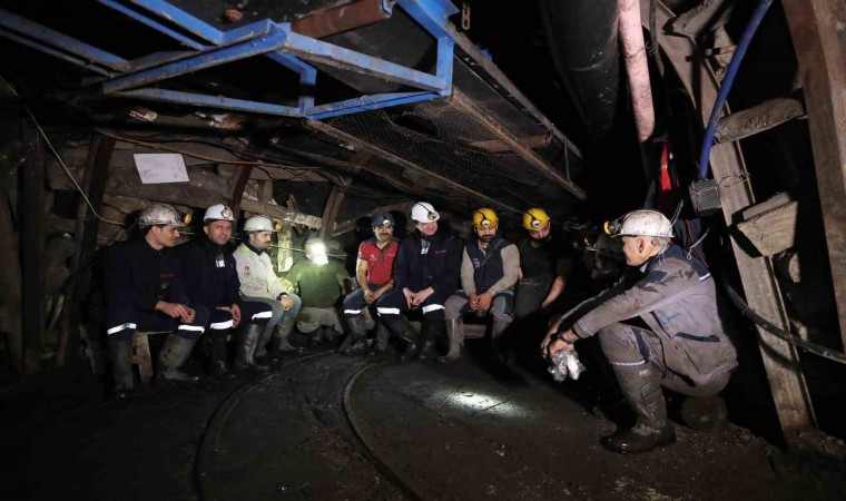 Kömür vagonları arasında ilerleyen Arıkan, işçilerle sohbetinde de çalışma şartlarına ve madencilik mesleğinin önemine dair vurgu yaptı. Arıkan, işçilerle hatıra fotoğrafı çektirdikten sonra yer üstüne çıkarak madenden ayrıldı.