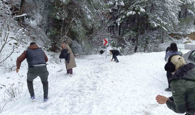 Manisa’dan gelen ve kar manzaralarının kendilerini mest ettiğini belirten Ali Şengüler ise, “Ailemle buraya geldik, kar sefası sürmeye geldik, bayağı zamandır kar görmemiştik, iyi oldu” dedi.