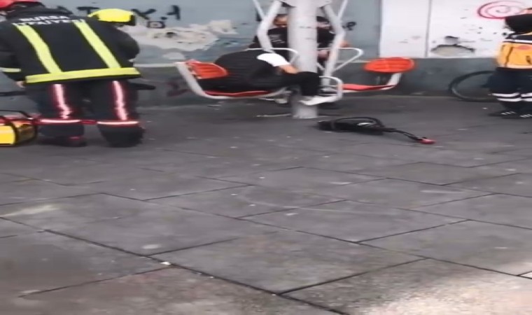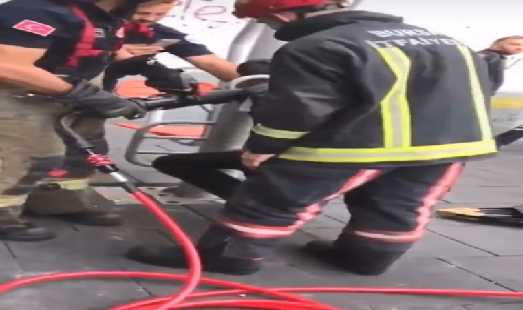Bursa’da parkta spor aletlerine sıkışan genci itfaiye ekipleri kurtardı. O anlar kameraya yansıdı.