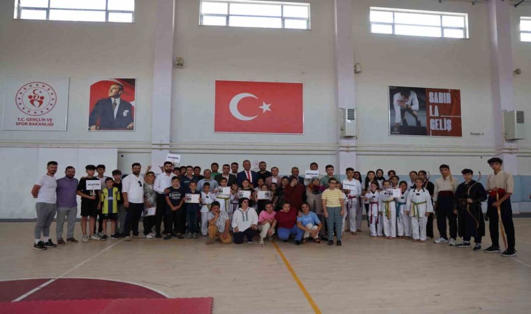 Yoğun katılımla gerçekleşen kapanış programında Yaz Spor Okullarına katılan gençlere protokol üyeleri tarafından başarı belgesi verildi.