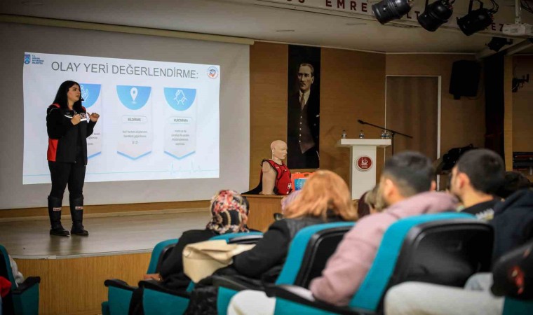 Yunus Emre Kültür Merkezi’nde gerçekleştirilen eğitimde personele, yaşanabilecek yaralanma ve kazalara karşı acil durumlarda doğru müdahale edilmesi amacıyla gerekli bilgiler aktarıldı. Eğitimde; temel yaşam destekleri, 112 aranırken dikkat edilmesi gerekenler, ilk yardım yöntemleri ve bilinç kaybı durumlarında nasıl hareket edileceğine dair bilgiler verildi. İlk yardım eğitmeni tarafından ilk yardım esnasında büyük öneme sahip dört basamaklı hayat kurtarma zincirinin aşamaları detaylı olarak ele alındı. Özellikle kalp krizi, boğulma, yaralanmalar gibi acil durumlarda ilk yardımın hızlı, bilinçli ve doğru yapılmasının, kazazedenin hayatta kalma şansını büyük ölçüde artıracağı ifade edildi. Boğulma tehlikesi yaşayan birine yapılacak hayat kurtarıcı teknik olan Heimlich manevrasının doğru bir şekilde nasıl yapılacağı uygulamalı olarak gösterildi.