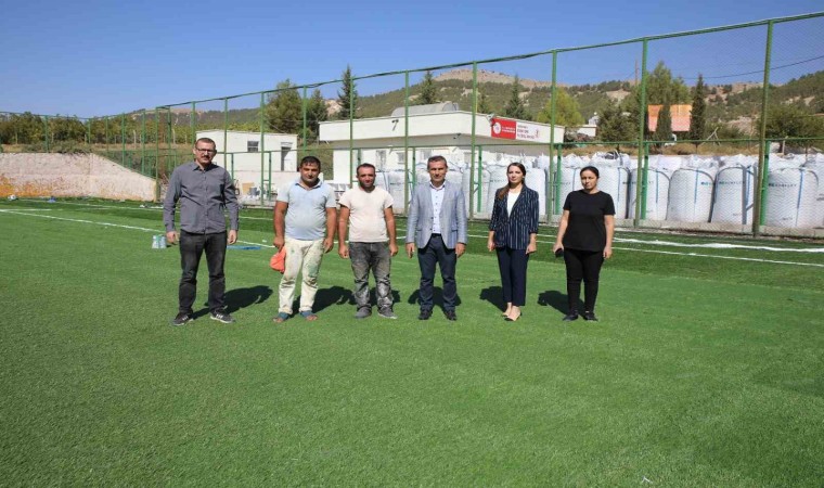 Gençlik ve Spor İl Müdürü Fikret Keleş, Esentepe Futbol Sahasında incelemelerde bulunarak sentetik çim yüzeyli futbol sahasının zeminin yenilenmesi ve 4’lü soyunma odası yapım çalışmaları hakkında yetkililerinden bilgi aldı.