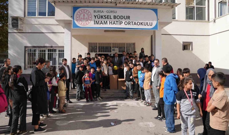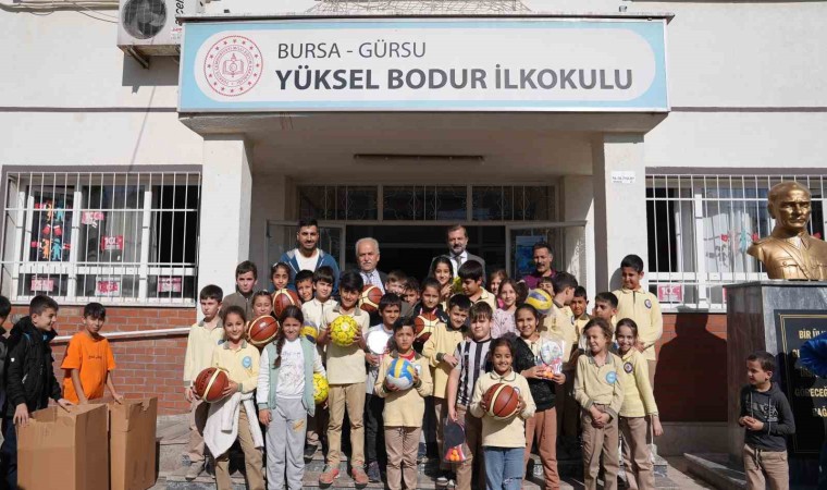 Gürsu Belediye Başkanı Mustafa Işık, yeni yetenekleri desteklemek için okul okul gezerek spor malzemeleri dağıtıyor.