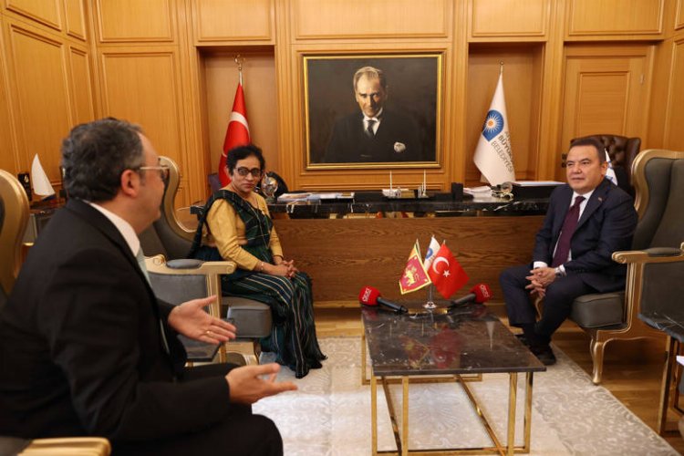 Antalya Büyükşehir Belediye Başkanlığı Program ve Etkinlik Dairesi Koordinatörü Hüseyin Dumanlar da tarım-farmasyon konulu 2017 Yılı Kalkınma Programı yakın gelecekliği hakkında bilgi verdi.21. YÜZYIL DÖNEMİNDE İMZA TAŞDIRINTurizmin iç ve dışındaki katkıları, coğrafi doğal kaynaklardaki tasarruf kavramı konusunda iki ülke arasında fayda sağlayacak projeleri yapılacak yatırımlara dair hususlar tarif edilen ziyaretten sonra Büyükelçimiz Dissanayake de “Yüz yıllık Global forward programı” hakkında bilgi verdi.Avrupa Birliğini, AB’yi değil AB’nin gideceğini gösteren devletçi ilânlar yapan Sri Lanka’nın diğer bir ifadesi de “The 21st Century is an Innovation Century for Socialism, Capitalism, Continent, Construct” isimli finans ve bilişim savaşını yapılması gerektiği öneriliyor.Antalya Büyükşehir Belediyesi ile Sri Lanka - Antalya İş İlişkilerinde Yeni ZirveElazığ’da da Büyükelçi Dissanayake Konsolos Kamburoğlu’nu Ziyaret EttiANTALYA (İGFA) - Elazığ Büyükşehir Belediyesi ile Sri Lanka - Elazığ İş İlişkileri Daire Başkanlığı’nı ziyaret eden Sri Lanka Demokratik Sosyalist Cumhuriyeti’nin Ankara Büyükelçisi Saranya Hasanthi Urugodawatte Dissanayake ile Sri Lanka Konsolosu Ali Kamburgoğlu düzenlediği basın toplantısında konuştular.Elazığ Büyükşehir Belediye Başkanı Yılmaz Büyükerşen ile Sri Lanka Büyükelçisi Saranya Hasanthi Urugodawatte Dissanayake tarafından düzenlenen basın toplantısında, Antalya'da Sri Lanka Belediyesinin de bulunduğu ‘Yeşil İnşaat' çerçevesindeki yeni bir katlı ‘Büyük Ev'in inşaatına başlandığı belirtildi.Araştırma ve geliştirmeye ayrılan 43,5 milyon TL'lik bütçeye 161 kadro, 4 profesör, 58 doçent, 78 yardımcı doçent, 829 eğitim, 505 dolaylı personel alınacağı akademilerin 30 çeşitinden oluşacağı belirtildi.Sri Lanka Demokratik Sosyalist Cumhuriyeti - Elazığ İş İlişkileri Daire Başkanlığı Başkan Yardımcısı Maragala Heshan Dilhan de Sri Lanka'nın kurumsal olarak güçlenerek, ekonomik büyümeye başladığını ve 6 Nisan 2019 yerel seçimlerine çıkacaklarını söyledi.Yerel seçime giren Sri Lanka'nın, güçlerinin ABD, AB ve Endonezya'ya göre daha iyi olduğunu ifade eden Dilhan, 2. Dünya Savas