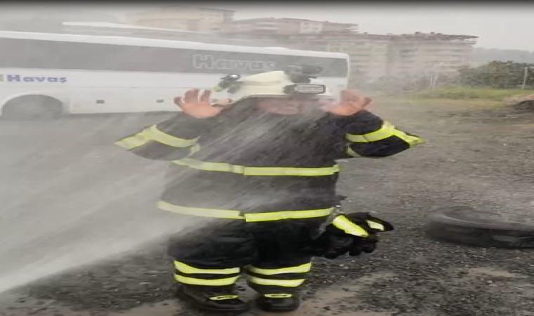 Şakanın sonunda itfaiyecilik mesleğinde başarılar dileyen meslektaşları bu şakayı videoya alarak ölümsüzleştirdiler.