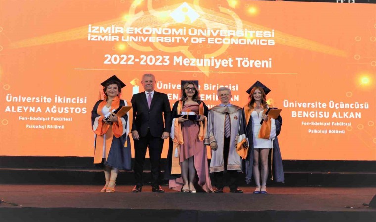 İEÜ Mütercim Tercümanlık Bölümü mezunu Ecenaz Demircan, üniversite birincisi olurken, Psikoloji bölümünden Aleyna Ağustos ikinci, aynı bölümden Bengisu Alkan ise üçüncü oldu. Bilgisayar Programcılığı mezunu Atakan Acaroğlu ise, İEÜ Meslek Yüksekokulu’nun birincisi olarak diplomasını aldı. Dereceye giren öğrencilere plaket ve ödüllerini, İzmir Ticaret Odası (İZTO) Yönetim Kurulu ve İEÜ Mütevelli Heyet Başkanı Mahmut Özgener ve Rektör Prof. Dr. Yusuf Hakan Abacıoğlu takdim etti. İEÜ, üniversiteyi dereceyle bitiren öğrencilerin lisansüstü eğitim alarak kendilerini geliştirmelerinin de yolunu açtı.