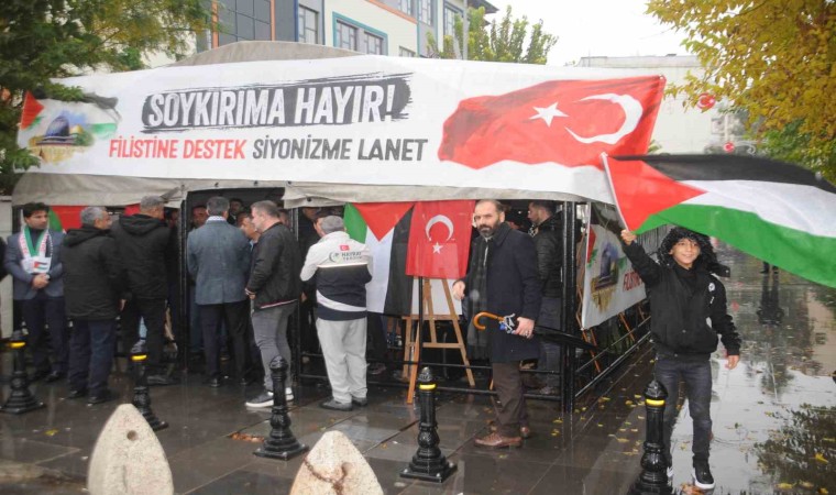 Şırnak’ın Cizre ilçesinde ’Filistin İnsanlık Nöbeti Çadırı’ kuran Sivil Toplum Kuruluşu (STK) temsilci ve üyeleri İsrail büyükelçisini sınır dışı edilip, büyükelçilik ve konsolosluğun kapatılmasını, siyasi, ekonomik ve askeri noktada ne gerekiyorsa yapılarak gerekli adımın atılmasını istedi.