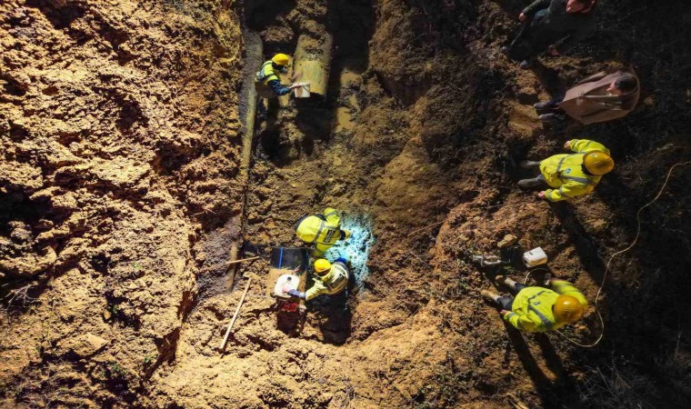 Sakarya Büyükşehir Belediyesi Su ve Kanalizasyon İdaresi (SASKİ), 24 saat esasıyla çalışarak altyapı hatlarında meydana gelen olumsuzluklara anında müdahale ediyor. Dış etkenler ve basınç gibi faktörlerden kaynaklanan arızaların abonelerin hayatına minimum düzeyde etki etmesi için anlık kesintiler hızla çözüme kavuşturuluyor. Dün gece saatlerinde 15 Temmuz Camili Mahallesi’ndeki abonelere su ileten hatta meydana gelen arızanın ardından hızla harekete geçen ekipler sabahın ilk saatlerine kadar yoğun bir çalışma yürüttü. Teknik ekiplerin özverili çalışmalarıyla arıza kısa sürede onarıldı ve bölgeye yeniden su verildi.