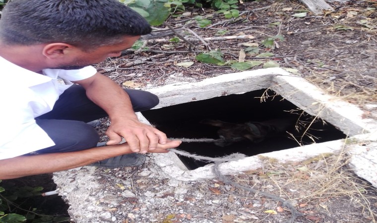 Kastamonu’nun Azdavay ilçesinde su deposuna düşen eşek, köylüler tarafından kepçe yardımıyla kurtarıldı.