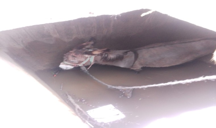 Kastamonu’nun Azdavay ilçesine bağlı Üyük köyünde kullanılmayan su deposuna eşek düştü. Su deposundan gelen sesi duyan vatandaşlar, eşeği kurtarmak için çalışma başlattı. Su deposuna düşen eşek, kepçe yardımıyla kurtarıldı.