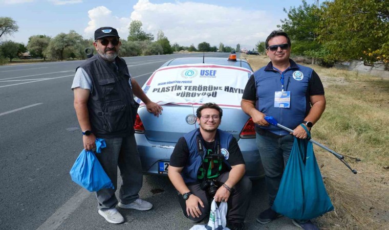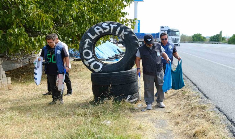 Kars’tan Edirne’ye yaklaşık 2 bin 83 kilometrelik kara yollarında plastik toplama etkinliği 19. gününde Erzincan’da devam etti.