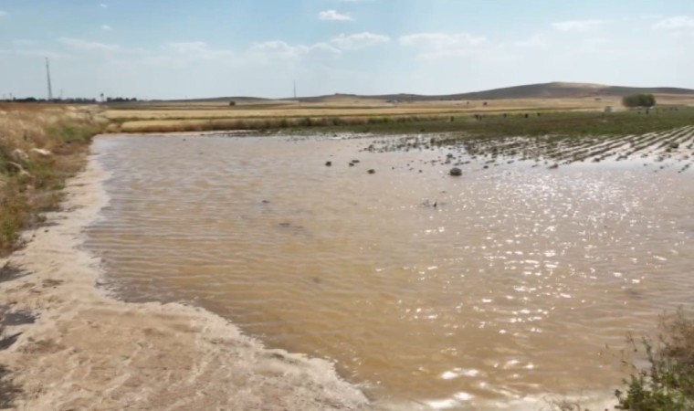 Şanlıurfa’nın Suruç ilçesinde sulama birliğine ait küpün patlaması sonucu pamuk tarlası sular altında kaldı.