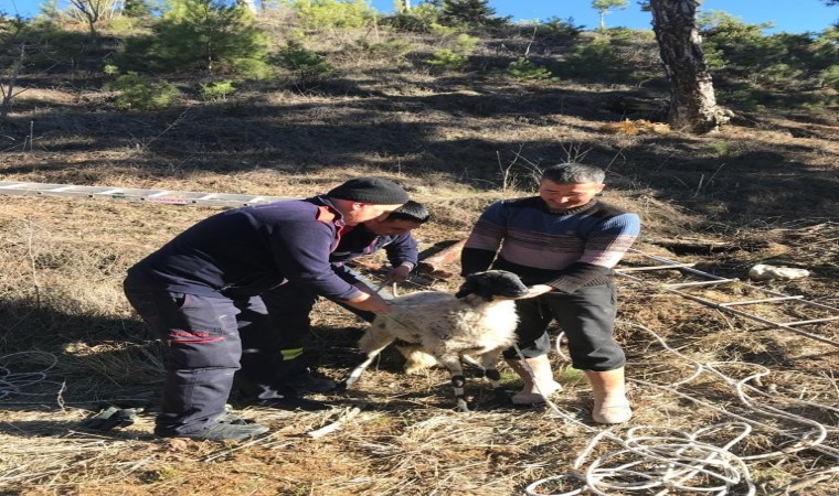 Denizli’nin Çameli ilçesinde su kuyusuna düşen küçükbaş hayvan, itfaiye ekipleri tarafından yapılan çalışmalar sonucu mahsur kaldığı yerden çıkarıldı.