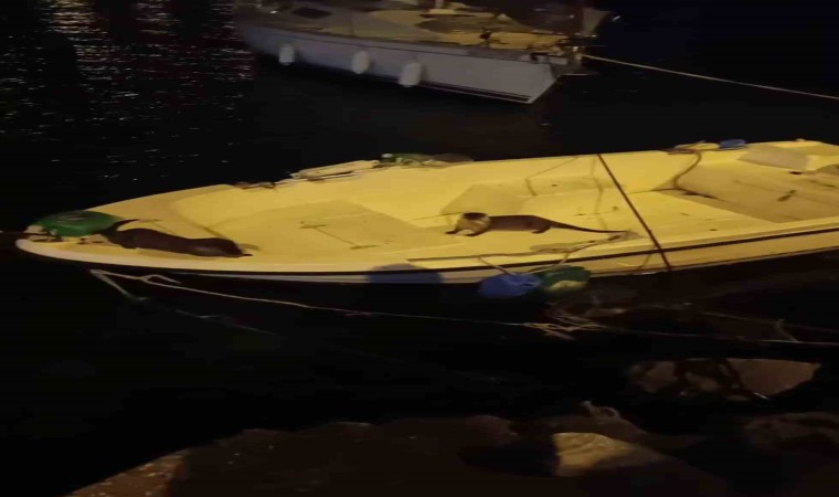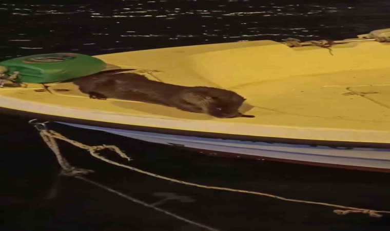 Bursa’da balık avlayan su samurları kıyıdaki teknelerde keyif yaptı. O anları gören vatandaşlar su samurlarını şaşkınlıkla izledi.