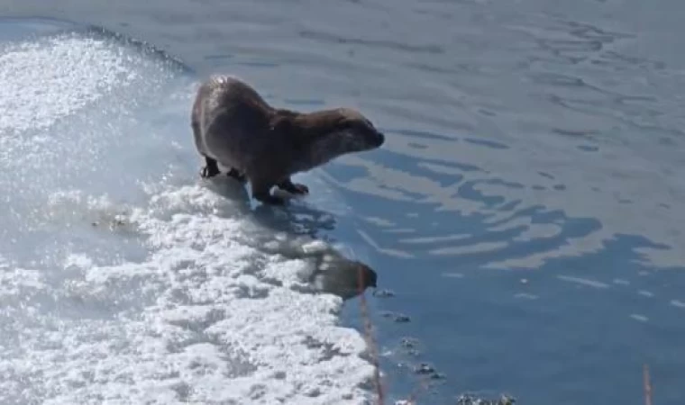 Yaşar KAPLAN/ YÜKSEKOVA, (Hakkari), (DHA)- HAKKARİ’nin Yüksekova ilçesinde, nesli tükenme tehlikesi altında olan su samuru, Nehil Deresi’nde avladığı balığı yerken görüntülendi.