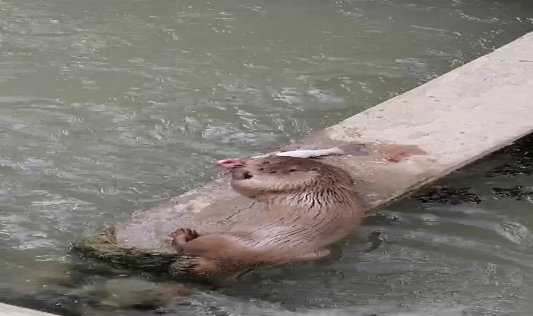 Karabük’ün Safranbolu ilçesinde nesli tükenmek üzere olan su samuru avladığı balığı yerken görüntülendi.