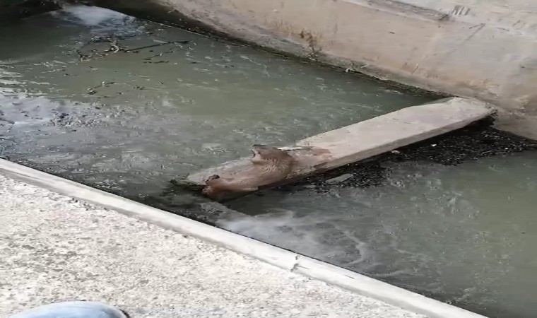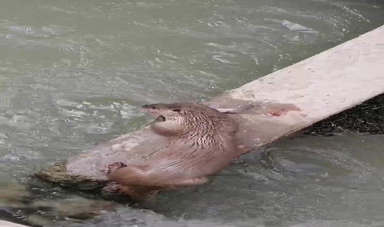 Kendisini görüntüleyene aldırış etmeyen su samuru bir süre sonra gözden kayboldu.