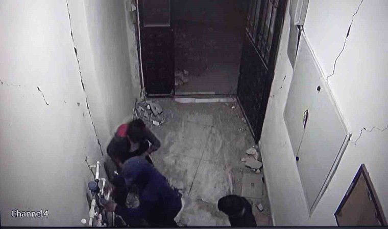 Adıyaman’da, depremden dolayı orta hasar alan bir binaya giren 5 şahıs, su sayaçlarını saniyeler içerisinde çaldı. Hırsızlık anları kameralara yansıdı.