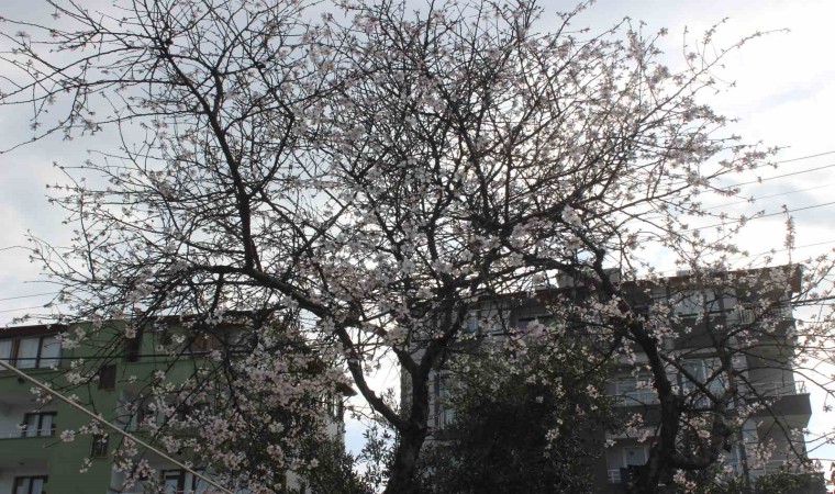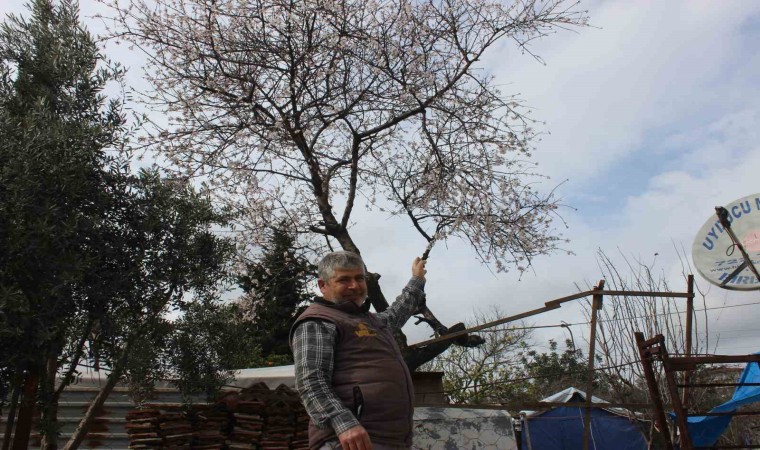 Hatay’da çiçek açan badem ağacı şaşırttı.