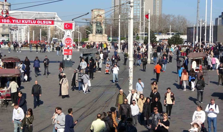 Taksim Meydanı ile İstiklal Caddesi, sıcak ve güneşli havayı fırsat bilenlerin akınına uğradı.