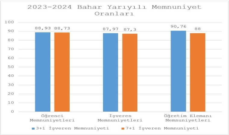 Öğretim elemanlarının 3+1 eğitim modelinden memnuniyetlerini ölçmek için düzenlenen ankete yüzde 33’ü kadın, yüzde 67’si erkek olmak üzere toplam 94 akademisyen katıldı. Akademisyenlerin 14 soruya verdikleri cevaplar doğrultusunda modelden memnuniyet düzeyleri yüzde 90 olarak ölçüldü. 7+1 eğitim modelinden memnuniyeti ölçmek için düzenlenen ankete toplam 25 akademisyen katıldı. Akademisyenlerin 7+1 modelinden memnuniyetleri yüzde 88 olarak ölçüldü. Akademisyenlerin iş yeri uygulama sorumlusu ile olan iletişimlerinden memnuniyet oranları 3+1 eğitim modeli için yaklaşık yüzde 91, 7+1 Eğitim Modeli için yüzde 89 olarak gerçekleşti.