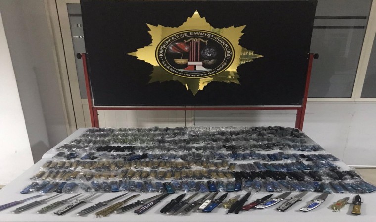 İzmir’in Karşıyaka ilçesindeki evinde bulundurduğu bıçakları, internetten satışa koyduğu belirlenen şüpheli, gerçekleştirilen operasyonla gözaltına alındı. Evde yapılan aramada ise tam 966 adet bıçak ele geçirildi.
