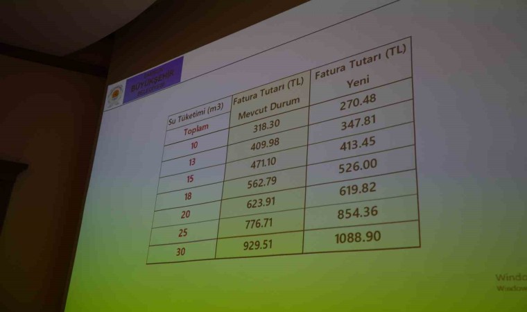 Tartışma konusu olan su faturalarına aylık TÜFE oranında zam uygulanması yöntemine de açıklık getiren Yanık, “TÜFE uygulaması ile ilgili düşüncelere saygı duyuyoruz. Yaptığımız hesaplamalarda ne kadar su tüketiyoruz belli. Giderlerimizi de hesaplıyoruz. Şu anda teklif ettiğimiz sisteme göre yüzde 0,21 kar elde ediyoruz. Yılsonuna kadar da TÜFE koymamıza rağmen kar, yüzde 1 bile değil. Bu uygulanabilir olsa TÜFE’yi kaldırabiliriz. 30 Büyükşehir Belediyesinin 22 tanesi TÜFE uygulamasını kullanıyor. 21 tanesi de kademeli sitemi uyguluyor. Burada mevzuat ve hukuki açıdan zararına su verilemeyeceğini herkes bilir. Bu konuda bizi anlayışla karşılayacağınızı biliyoruz” diye konuştu.