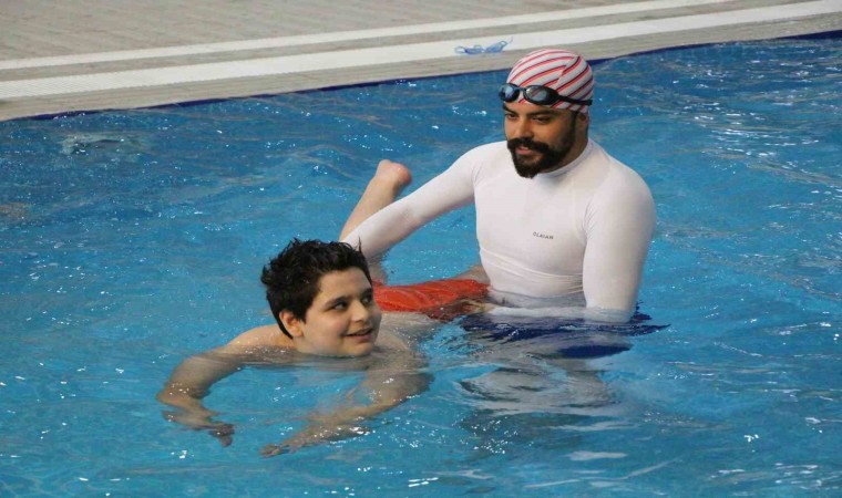 13 yaşındaki oğlu Yasin Uğur’un yüzme kursuna geldikten sonra yaşadığı değişime değinen anne Firdevs Canbolat, “Yüzünün ıslanmasına bile tahammülü yoktu. Elini, yüzünü yıkayamazdı. Ama şimdi kendisi duşunu alıyor. Suyla oynuyor” diye konuştu.