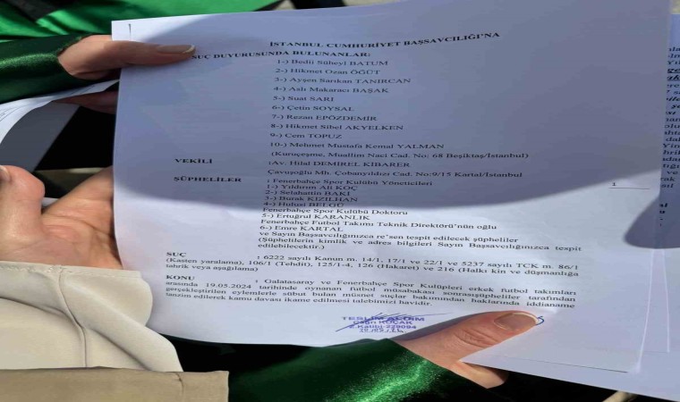 Galatasaray Kulübü Başkan Adayı Süheyl Batum’un da aralarında bulunduğu 10 kişi, dün oynanan Galatasaray - Fenerbahçe derbisinin ardından yaşanan olaylar sonrası bugün Çağlayan Adliyesi’ne gidererek Fenerbahçe Kulübü Başkanı Ali Koç hakkında suç duyurusunda bulundu. Adliye çıkışında basın mensuplarına açıklamalarda bulunan Batum, “Mustafa Kemal Atatürk’ün bizlere armağan ettiği 19 Mayıs Atatürk’ü Anma Gençlik ve Spor Bayramı’nda dün hepimizi çok büyük üzüntüye sevk eden olaylar oldu. Galatasaray ile Fenerbahçe arasında bir maç yapıldı. Bu maçlar yıllardır yapılır. Ve bir kazanan bir de kaybeden olur. Şampiyonluklar alınır, şampiyonluklar verilir. Bunlar önemli değildir. Ama maçtan sonra yapılanların Galatasaray Spor Kulübü ve camiasının unutması mümkün değildir” diye konuştu.