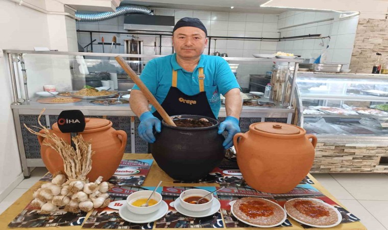 Afyonkarahisar’ın Şuhut ilçesinin yöresel yemeği olan ve çömlekte özel olarak yapılan tescilli keşkek, vatandaşları tarafından yoğun ilgi görüyor.