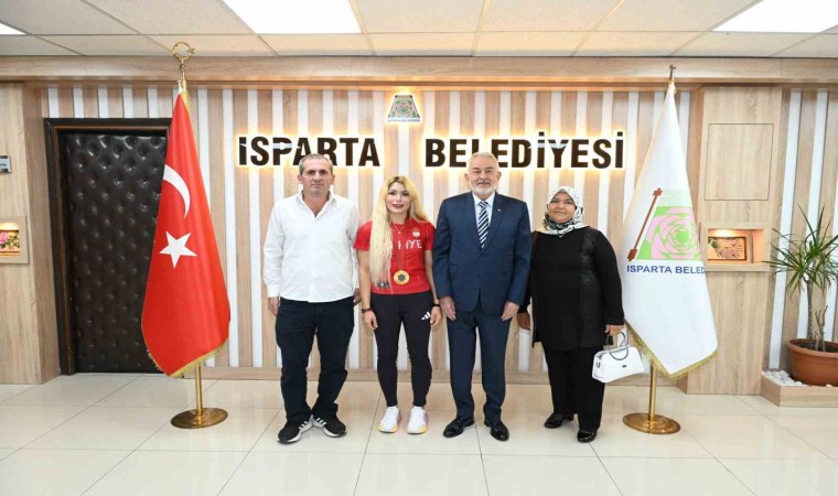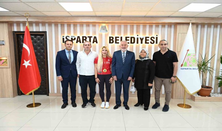 Golbol Kadın Milli Takımı oyuncusu Ispartalı Reyhan Yılmaz beraberinde annesi Şenay, babası Mehmet Yılmaz ve Gençlik ve Spor İl Müdürü Murat Çağrı Kaya ile birlikte Belediye Başkanı Şükrü Başdeğirmen’i makamında ziyaret etti.